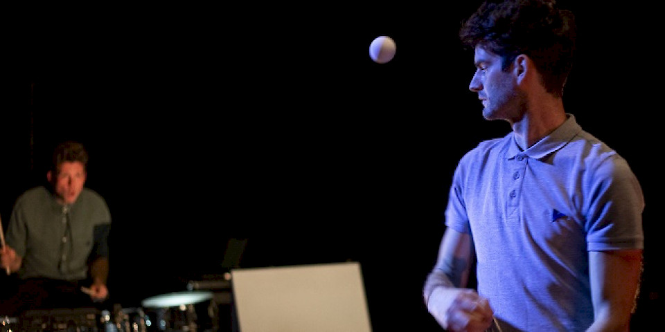 Ein Jongleur, der mit faszinierender Präzision seine Bälle über mehrere hölzerne Dreiecke dirigiert. Ein Schlagzeuger, der diesen Rhythmus mit seinem Instrument aufgreift. Alles ist genau aufeinander abgestimmt. Aber dann beginnen die Dreiecke sich zu bewegen und eine eigenwillige Choreografie zwischen Jongleur, Musiker und Objekten entsteht. „Man strikes back“ ist eine rasante Zirkus-Performance zwischen Mensch und Roboter.