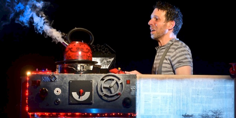 Ein einsamer Mann wohnt in einer rätselhaften Maschine. Wie jeden Morgen steht er auf, um sich einen Tee zu machen. Aber heute ist etwas anders: Seine Maschine öffnet die Tür zu einer magischen Welt. Mit Projektionen, Musik und Objekten verwandelt der Figurenspieler Ornan Braier die Bühne in ein eigenes Reich voller starker Bilder und verrückter Einfälle. Er überwindet seine Einsamkeit und nimmt das Publikum mit in eine Welt der Fantasie.