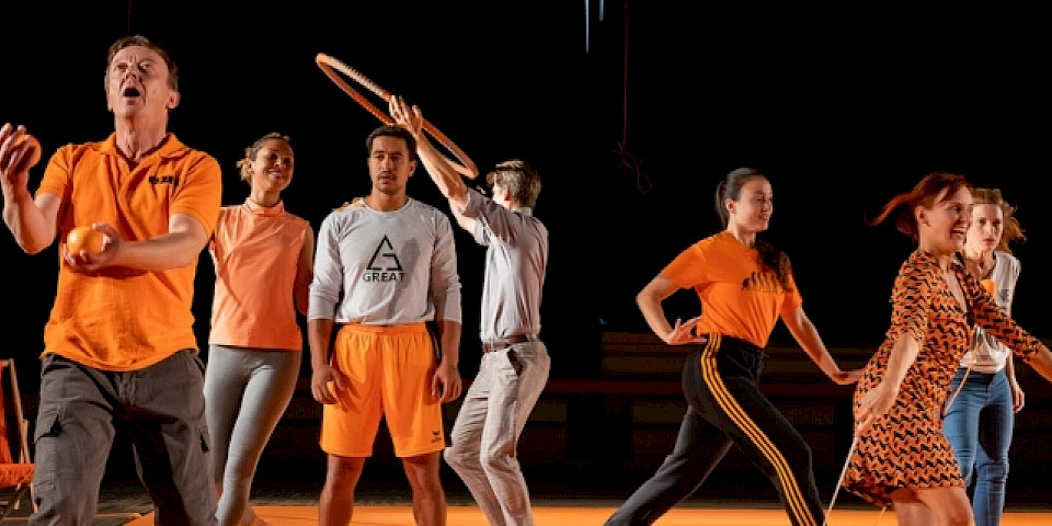Sieben Leute treffen sich auf der Bühne. Los geht’s: Immer performen, immer gute Laune. Die Welt entdecken, die schnell ist und laut, aufregend und unterhaltsam. Alle sieben sind auf der Suche nach dem Kick und strampeln sich ab bis zur Erschöpfung. Stop! Vielleicht mal Luftholen? „Slow Motion - Roller Coaster“ ist eine inszenierte Atempause zwischen Zeitlupe und Achterbahn, eine höchst physische und unterhaltsame Einladung ans Publikum, Halt zu machen und sich von der ständigen Aufregung, dem Leistungsdruck und vermeintlichen Normen loszusagen. Physical theatre an der Grenze der Gelassenheit.