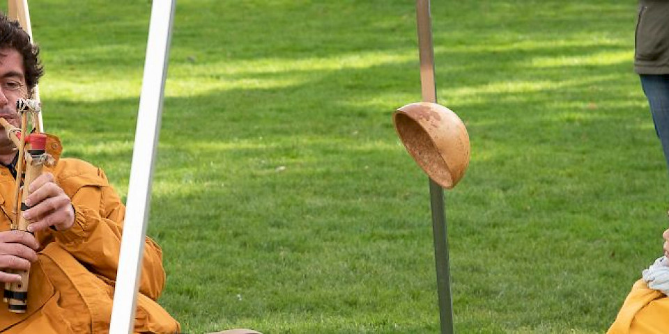 "L'Echo d'Eole" ist ein Landschaftskonzert, das dem Wind gewidmet ist. Seine Kraft und seine Richtung schwanken, er ist nicht zähmbar und doch kann man ihn hören. Dank maßgefertigter Instrumentalskulpturen erklingen überraschende und melodiöse Töne. Benoît Sicats Duett mit dem Wind lässt viel Raum für Improvisation und Zufall und lädt die Besucher*innen zu einem einzigartigen Moment des Zuhörens ein: Harfen mit hohen Obertönen, Orgeln mit geisterhaftem Flüstern, zufällige Klänge von Glockenspielen oder Windmühlen schaffen eine besondere Atmosphäre. Benoît Sicat lässt sich mit seiner Installation im öffentlichen Raum nieder und kann in freier Wanderung entdeckt werden.